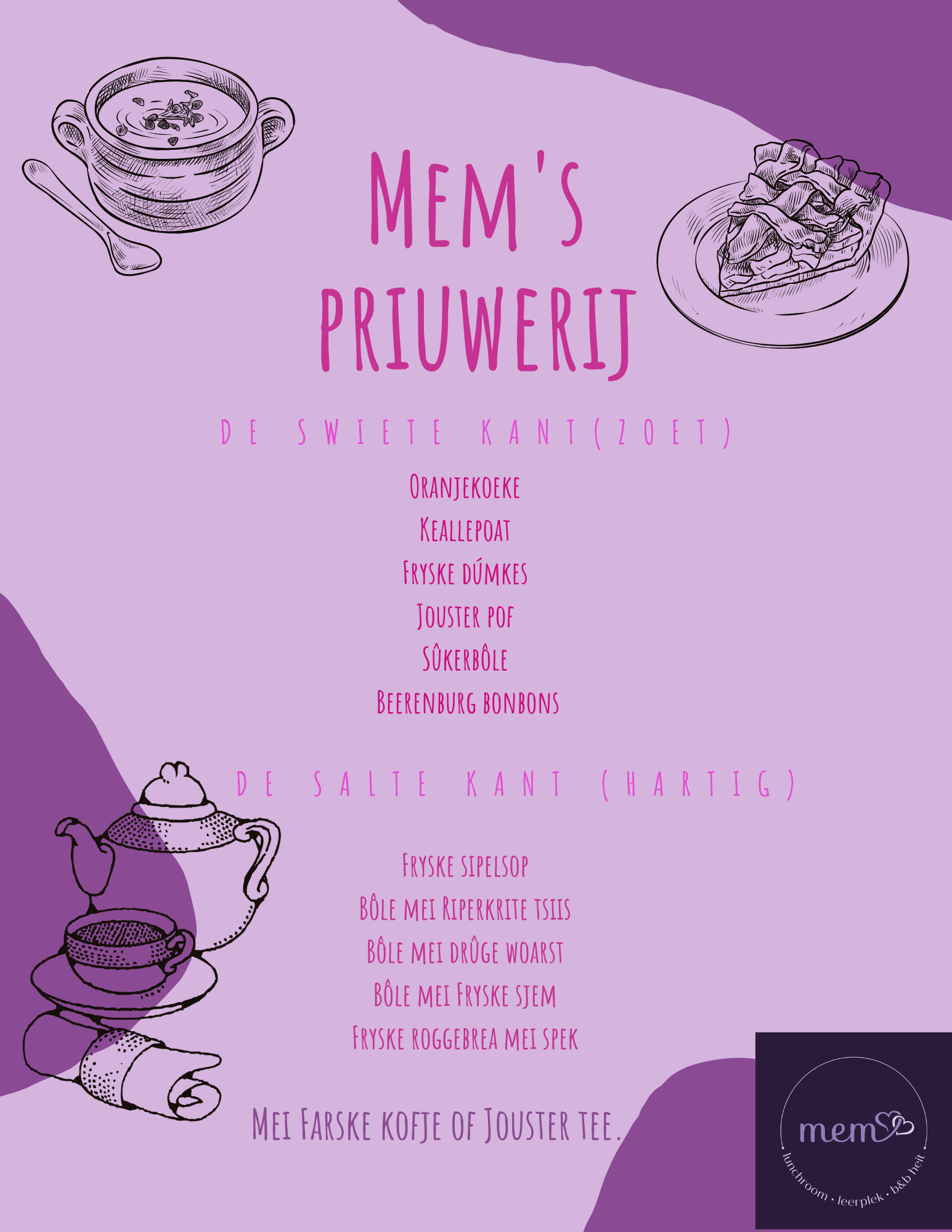 Reserveer minimaal 2 werkdagen voor de gewenste datum uw Priuwerij en ervaar de gastvrijheid van Lunchroom Mem.
